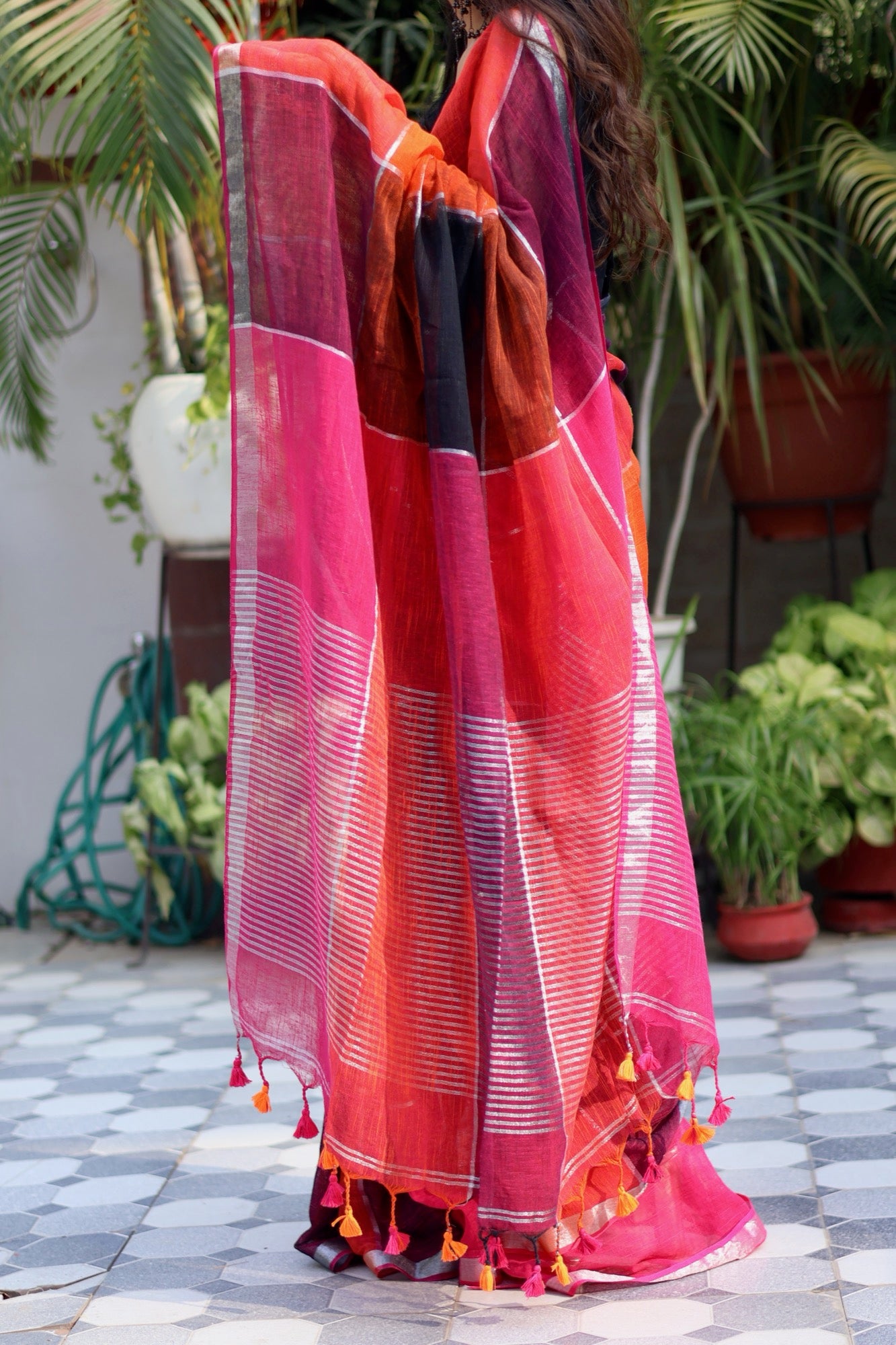This is your “instant mood-lift” saree — perfect for evenings out, festive dinners, or days when you simply want your outfit to speak first.