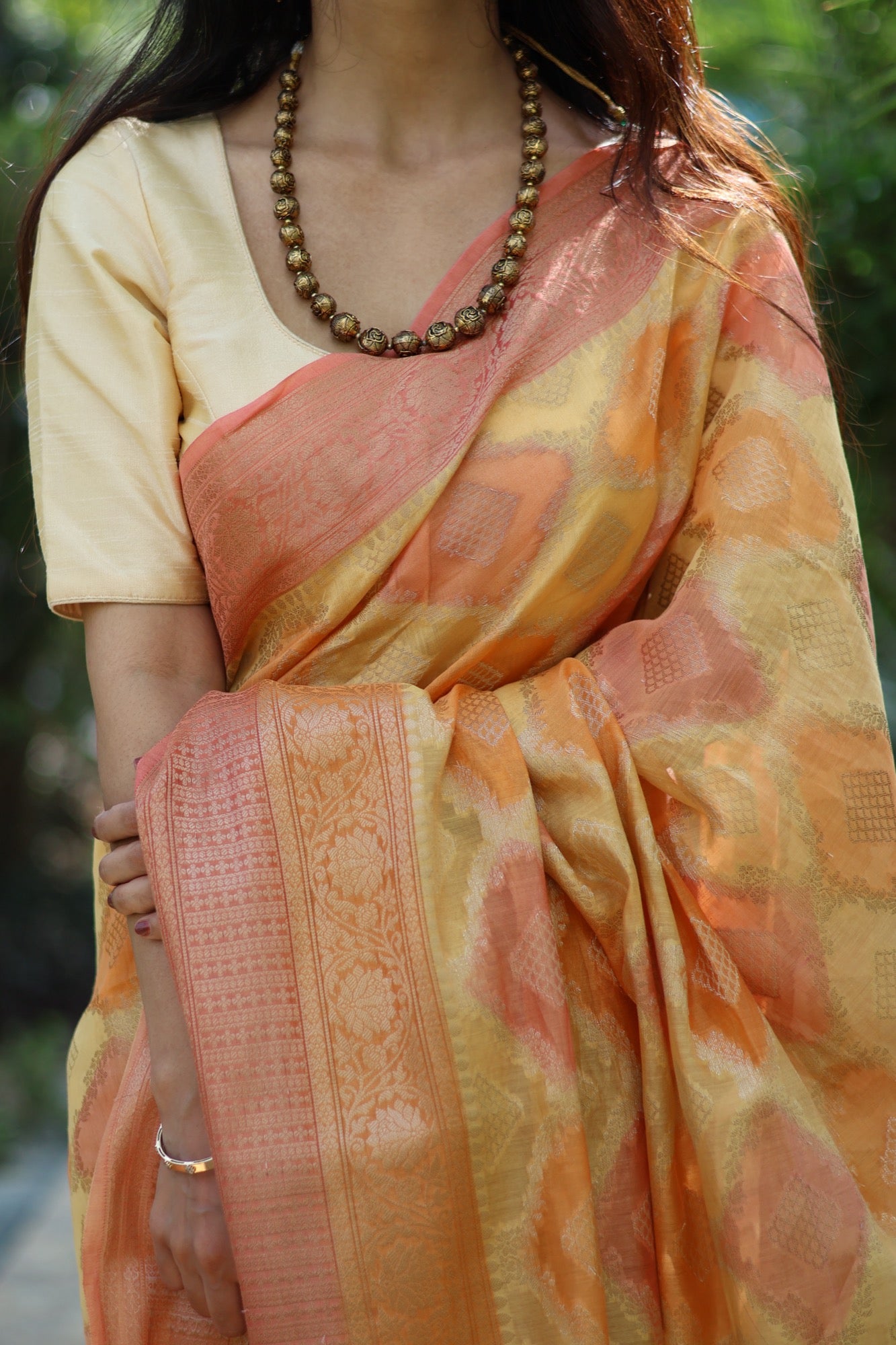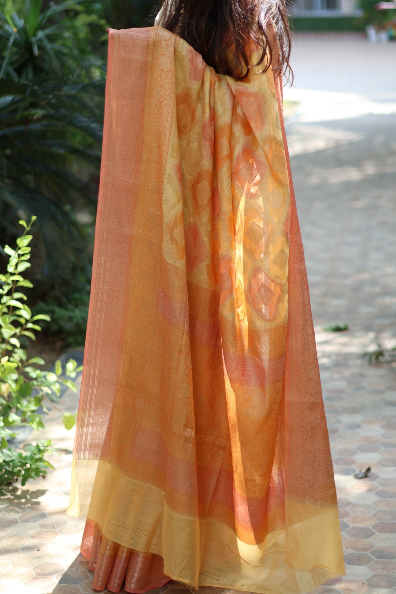 Colour: Saffron–Peach with golden zari Rangkaat weave