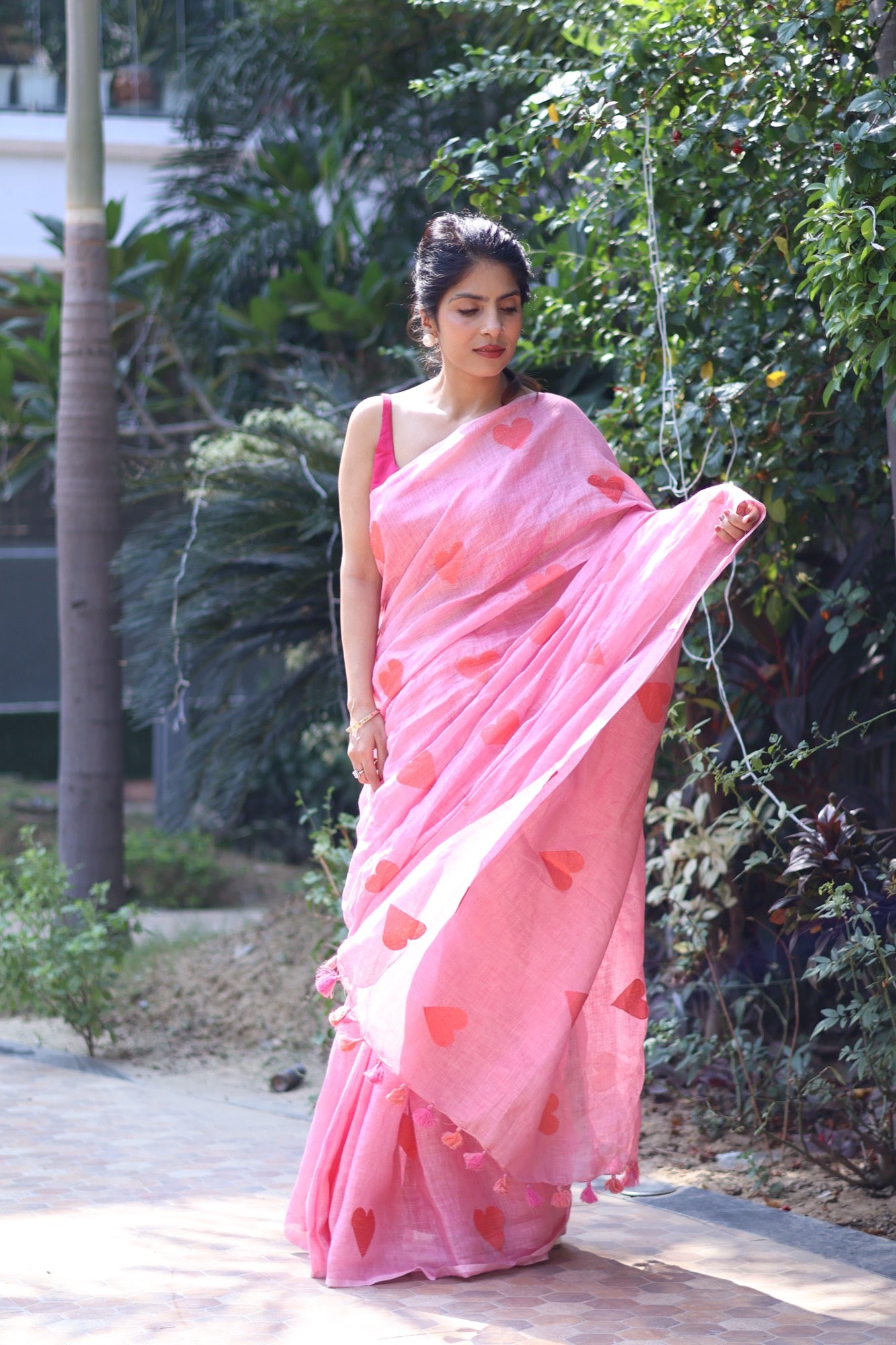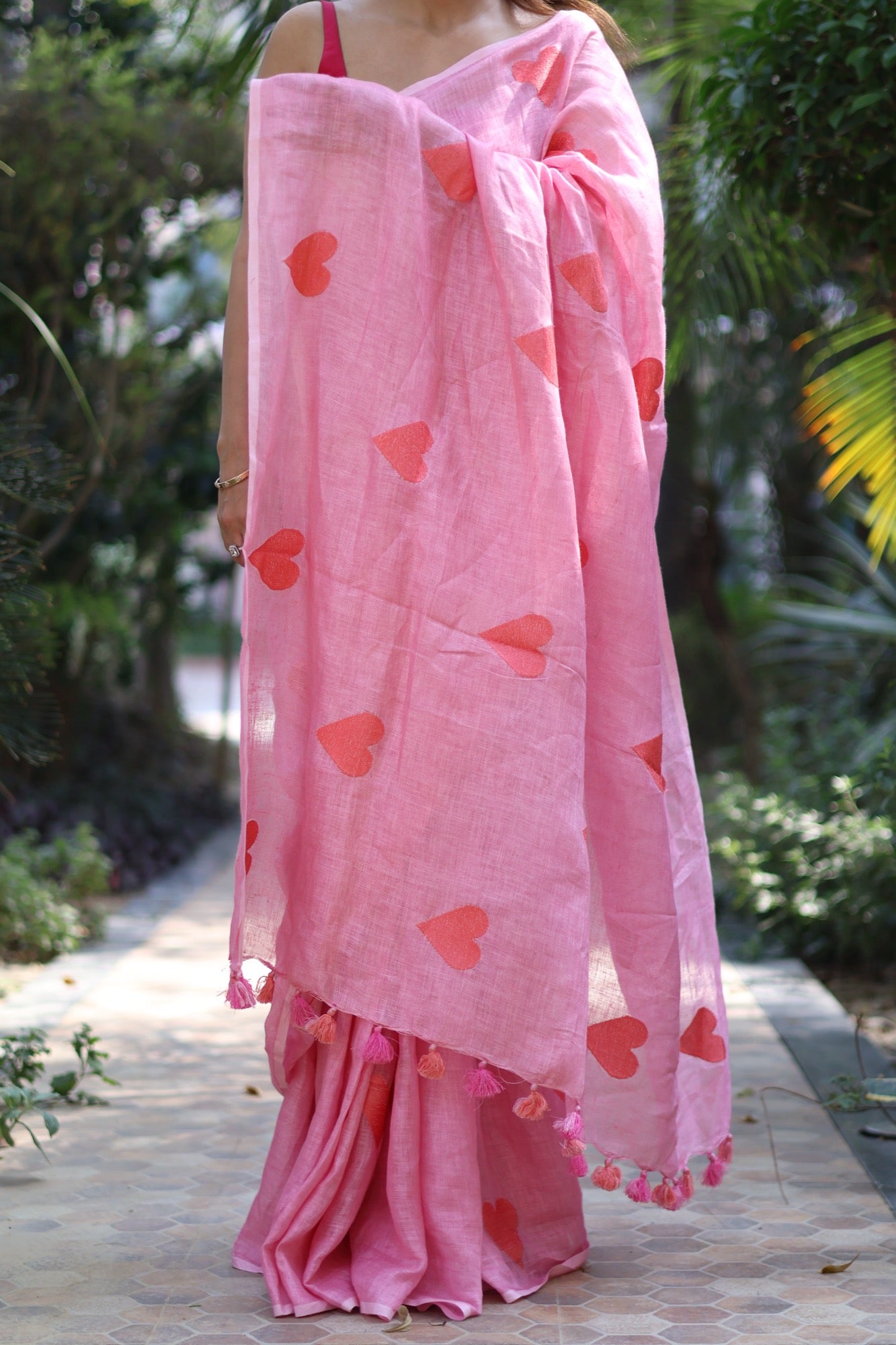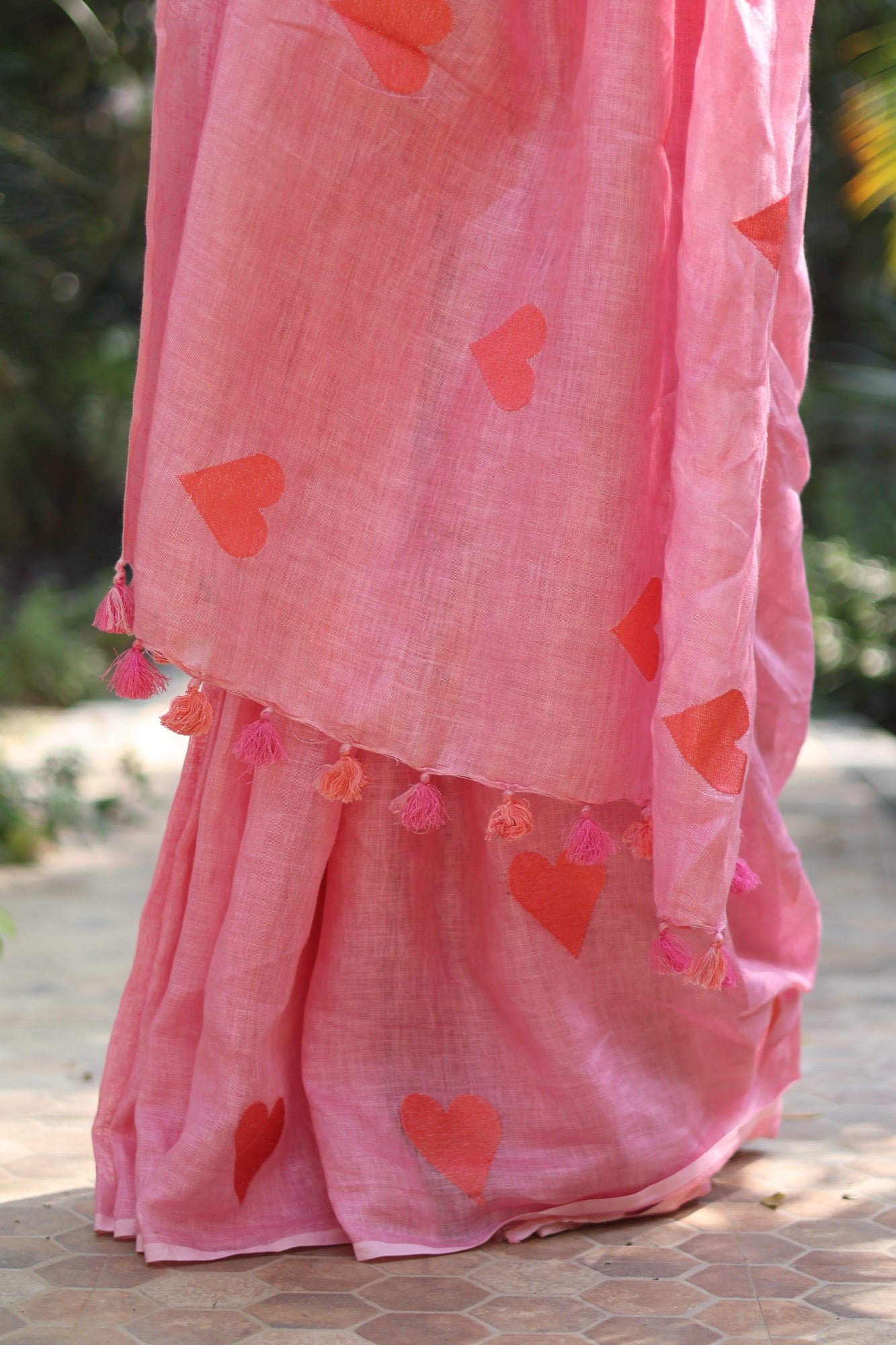 A playful ode to love and lightness, Sweetheart wraps you in soft pink hues and embroidered heart motifs that feel like little love notes scattered across the breeze. Crafted in pure linen, its airy drape and whimsical tassels make it perfect for brunches, celebrations, or simply when you want to wear a little happiness. Let Sweetheart be your reminder to wear your heart with pride—bold, bright, and unapologetically joyful.